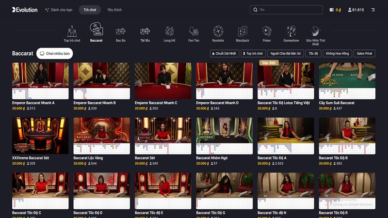 - Cược: Người chơi có thể đặt cược vào Người chơi, Ngân hàng hoặc Hoà. Tỷ lệ trả thưởng khác nhau.